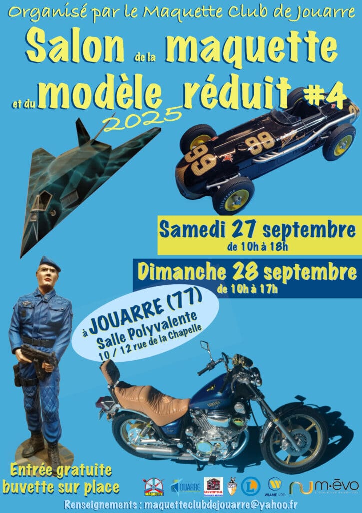 Le Maquette Club de Jouarre vous donne rendez-vous pour la 4ᵉ édition du Salon de la Maquette et du Modèle Réduit, les samedi 27 et dimanche 28 septembre 2025 à la Salle Polyvalente, située au 10/12 rue de la Chapelle à Jouarre (77).