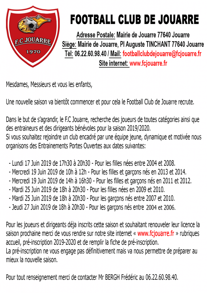 Contact et coordonnées: Frédéric BERGH 06 22 60 98 40 ou Elodie bergh, secrétaire 06 29 65 79 97